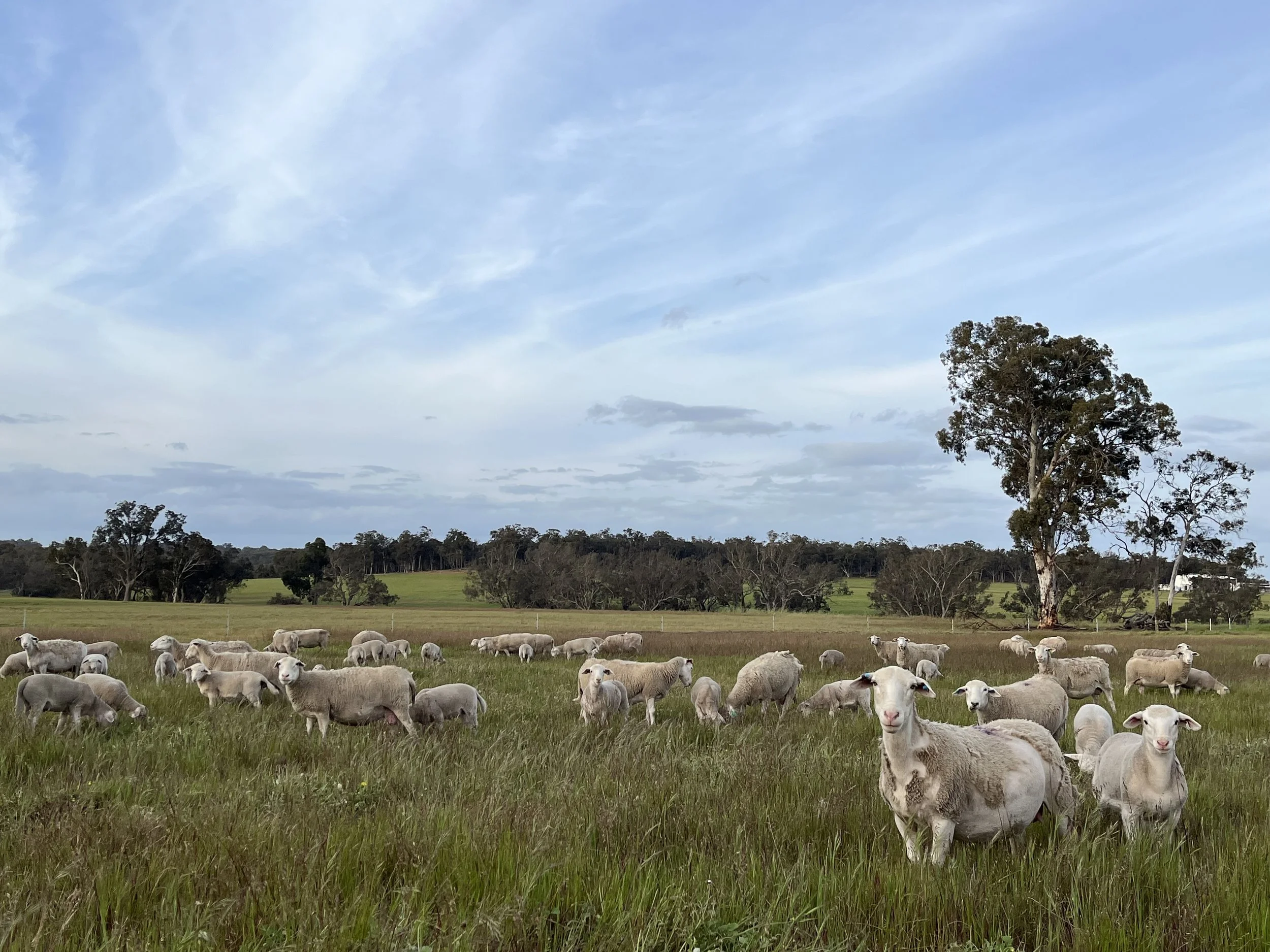 Jessica and Conrad Gordon own and run Oakeley Farm, a regenerative farm in Frankland River Western Australia. Focusing on enhancing biodiversity, soil health and supporting natural ecosystems on the property, they hope to make a positive impact on the environment. The Gordons run a mixed Ultrawhite and Sheepmaster flock, carrying over ewe lambs to continue expansion of breeding stock. Management of pastures utilising time controlled cell grazing takes a little more time and effort. However, this best practice approach to rotation allows maximum feed utilisation and positive animal health outcomes. Welfare is at the forefront, with every aspect of flock life and management considered to ensure an uncompromising commitment to outstanding animal stewardship. It is the hope of Jessica and Conrad that all of these strategies and practices combine to culminate in a sustainable and profitable long-term farming enterprise.